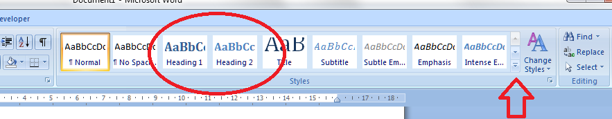 I’ve circled Heading 1, and the arrow points at a scroll bar that will let you see a whole range of different things you can do.