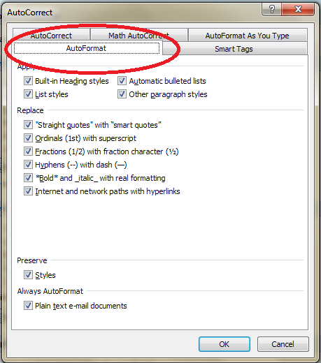 The two features we’re interested in are AutoFormat and AutoFormat As You Type.