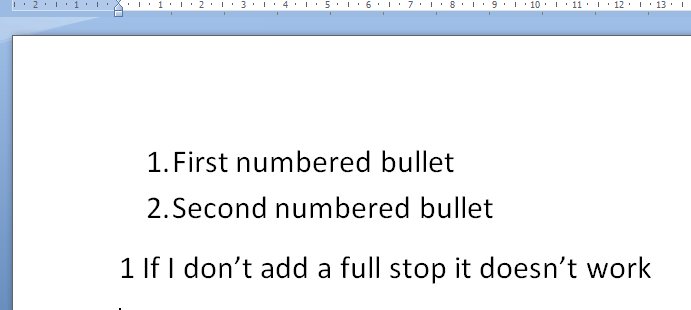 As you can see, you do need that full stop after the number, otherwise it doesn’t “realise” you’re writing a list.