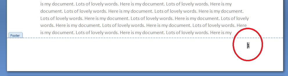 Once you’ve pressed OK, you will be back in the Footer of your document, with the main text still in grey and the page number in black, because you’re in the Footer, not the main text:
