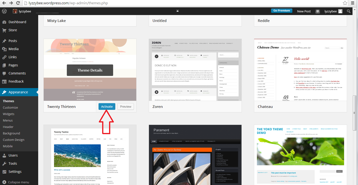 • When you hover over a theme, you will get the opportunity to Preview or Activate (see below)