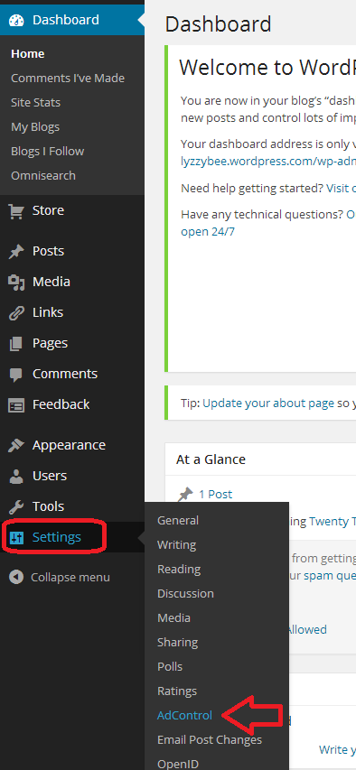 Here’s how you remove them. Go to Settings on the Dashboard and then Ad Control: