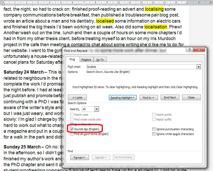However, Find all word forms does NOT find “localisation” in the same piece of text, so I’d be careful about using this one (in fact, try not to), as it will miss out words from your search: