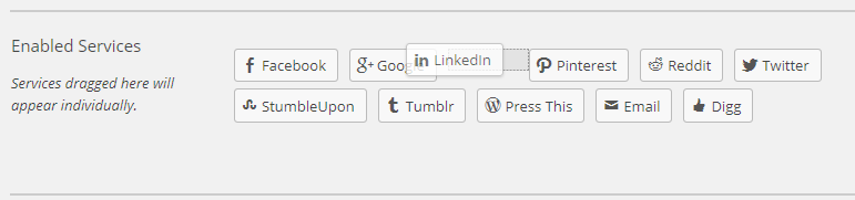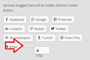 If you want to change the order in which the sharing buttons appear, simply left click, hold the mouse button down and drag the button to where you want it to appear: