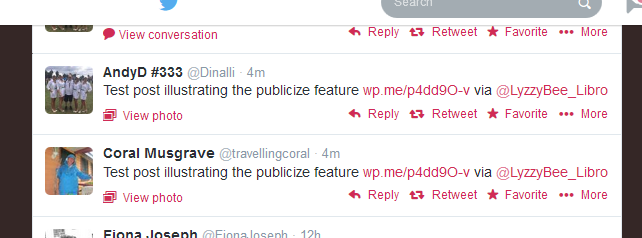 And here’s what a Twitter share or two looks like. You can see that “via LyzzyBee_Libro” has been added to the end of the automatic tweet because that’s the Twitter ID I specified above.