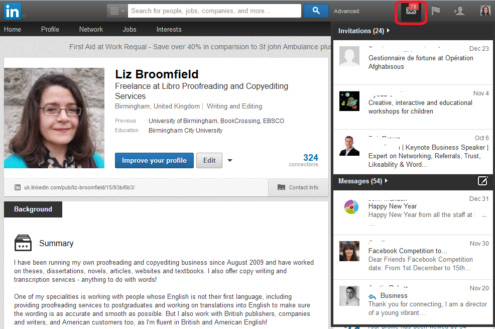 Invitations allow you to see who has invited you to connect and any messages they’ve sent you via LinkedIn: