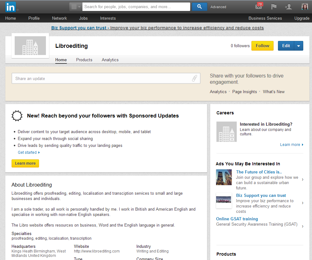 Be professional. LinkedIn is known as a professional and careers-orientated site, although there is certainly room for the self-employed. But you do need to be extra professional and not very personal on here.