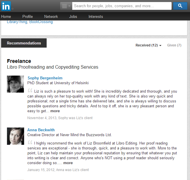 It’s a good idea to include as much information as you can on here – and in a professional way. While it’s never a good idea to allow typos and grammatical errors on any professional profile, it’s vitally important here, as people tend to make more of an effort, and so any errors will be very glaring.