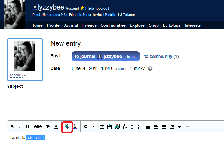 LiveJournal uses another common icon that you’ll find for a link – this is apparently a globe with a link of a chain attached …