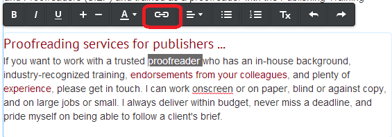 If you want to edit the link, highlight the underlined text and click on the same Link button – you can now change it as you wish.