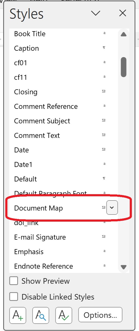 How to change the Navigation Pane style using Document Map