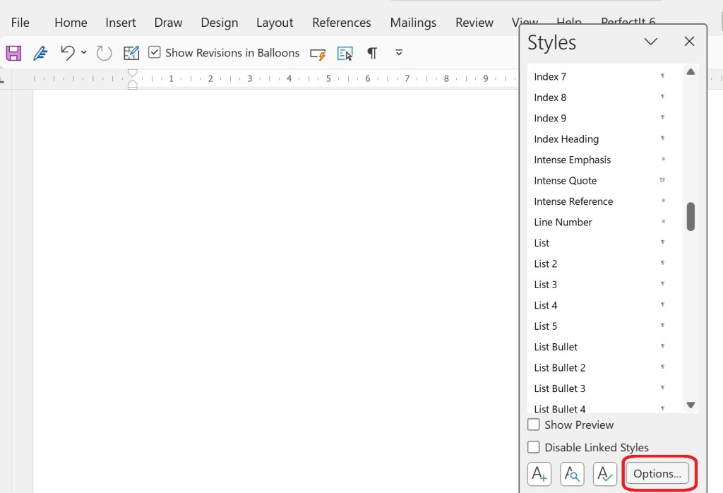 Then change the drop downs to “Select styles to show”: All styles and “Select how list is sorted”: Alphabetical.