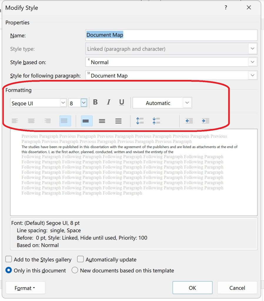 Now the Modify Style window will appear. Here you can see the style is set to be an odd-named font with a very small font size. Here you can just change the font and size to whatever you want: